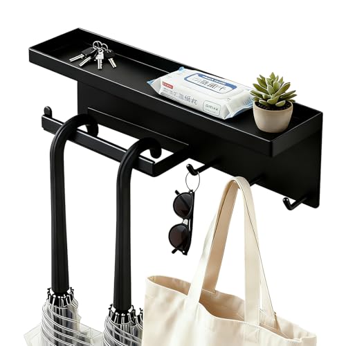 磁石がしっかりしていて、傘を掛けてもトレーに物を置いても安定しています。鍵の定位置ができて、玄関がスッキリしました。