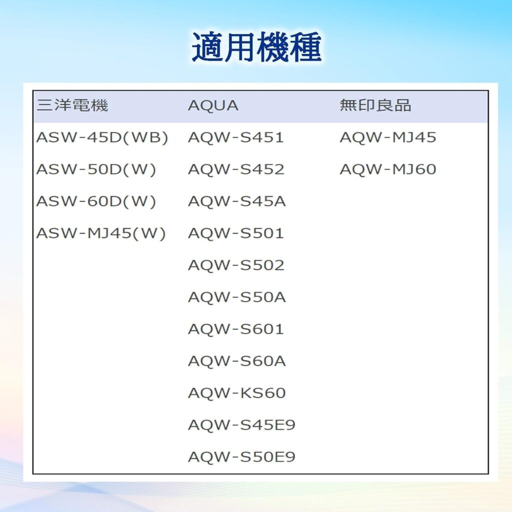 家電量販店などではなかなか見つけにくい、アクア(AQUA)やサンヨー(SANYO)の洗濯機に対応した互換フィルターです。